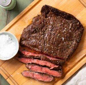 Lean, flavorful cut of beef that comes from the abdominal muscles of the cow, specifically from the lower chest area. It is typically long and flat, with visible grain running through the meat.
