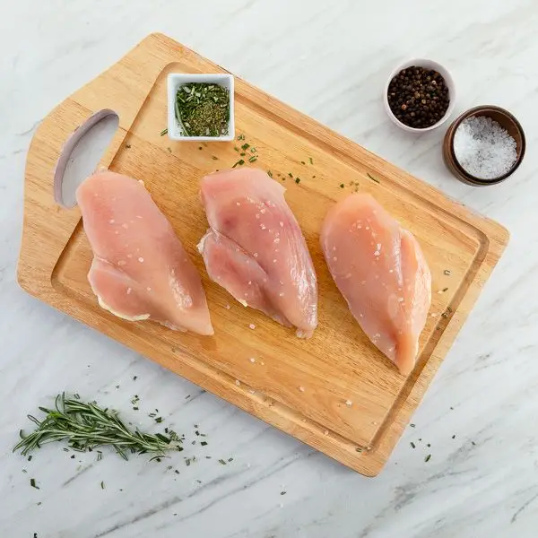 Boneless, lean meat cut from the chest of the chicken. High in protein, and low in fat.